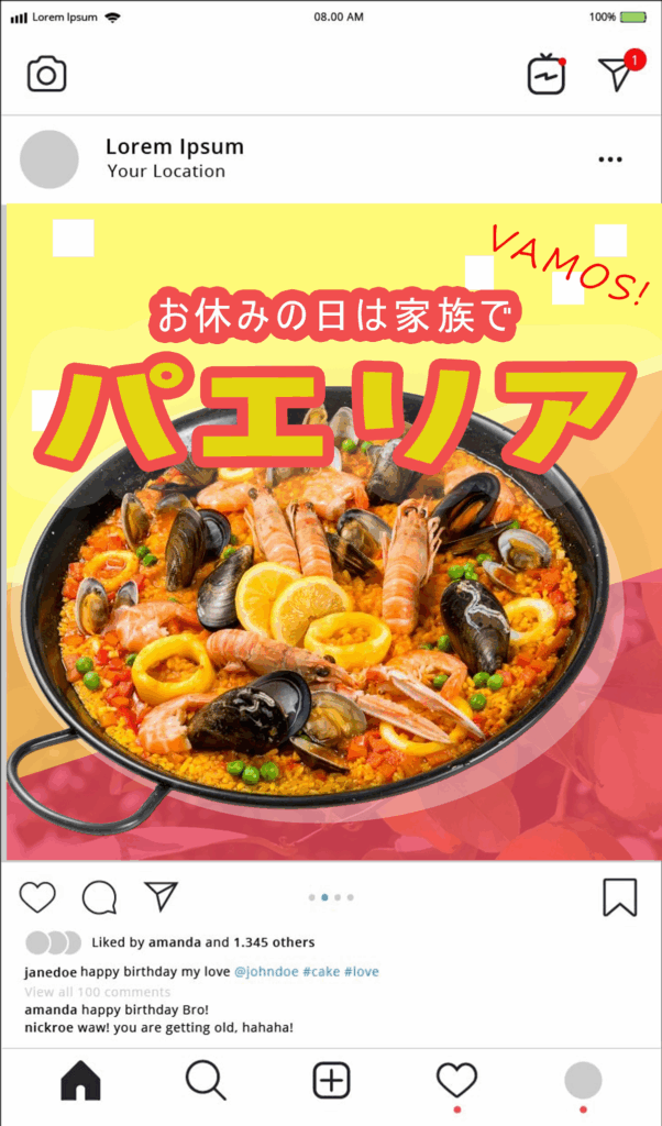 | 制作時に考慮した点や感想 | スペインといえばパエリア。国旗のメインカラーに負けない元気でポップに表現。家族や若者をターゲットにした。 |