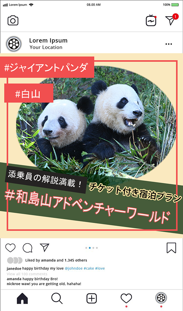 | デザインコンセプト | かわいいパンダを前面に。同じパンダでも個性があり、動物園で魅力を感じてほしい。30代社会人をターゲットに。 |