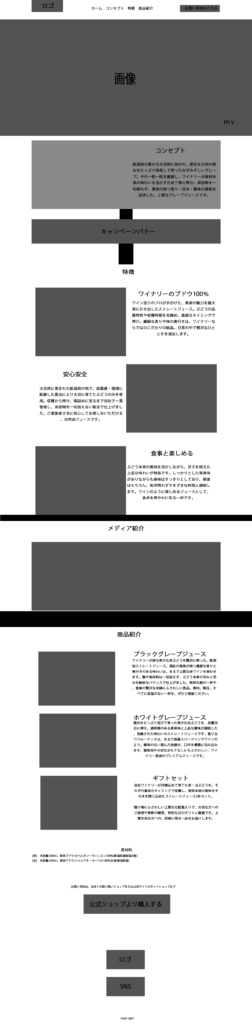 架空のぶどうジュースのECサイトを想定してWEBサイトを作成しました。