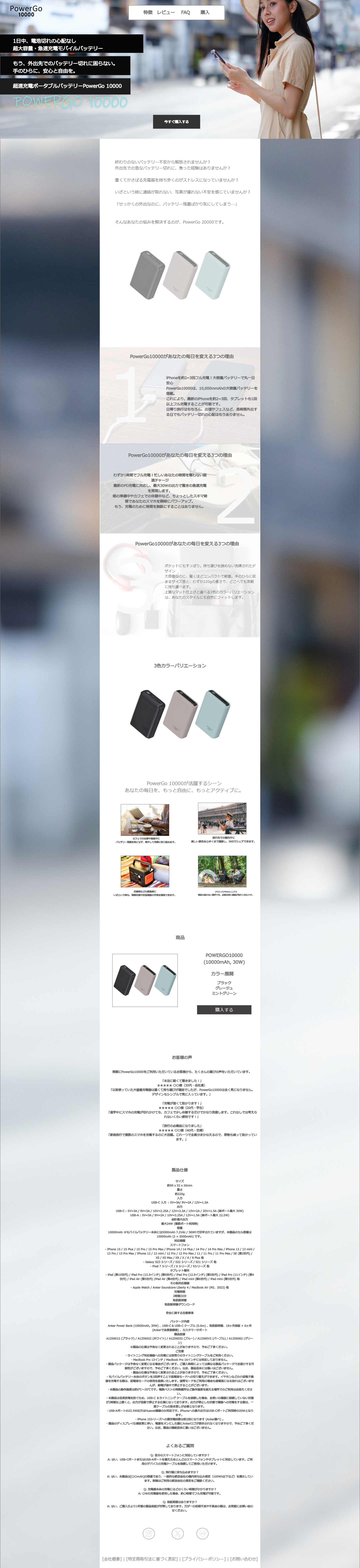 架空のモバイルバッテリーのLPを作成しました。