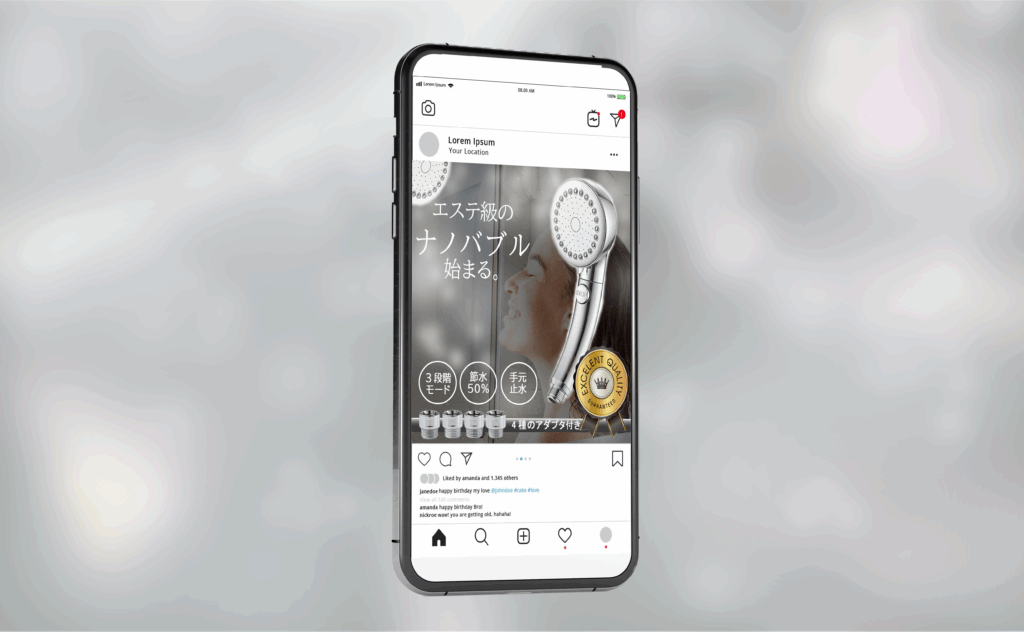 架空のシャワーヘッドブランドの製品のバナーを制作しました。 作品について 作品タイトルECサイトバナー シャワーヘッドサイズ1000×1000pxl(正方形)クライアント架空の小売り店デザインコンセプ…